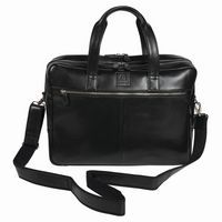Sacoche pour ordinateur en cuir noir, Matériau: Cuir, Coloris: Noir, Modèle: Double compartiments