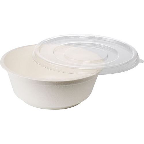 Saladier en fibre de canne ronds, Matériau: Fibre de canne à sucre, Coloris: Blanc, Capacité: 0.5 L