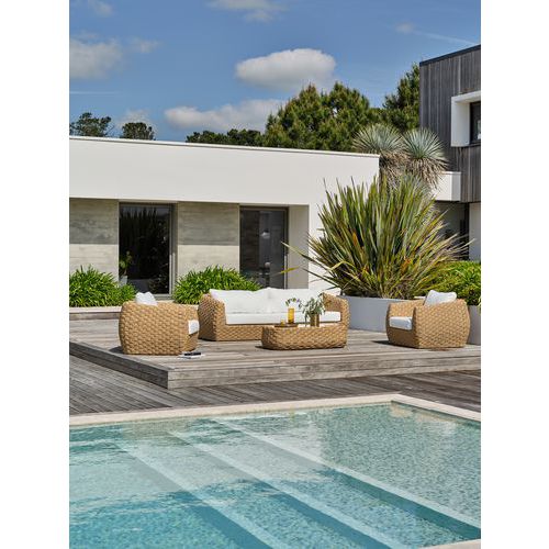 | Intitulé du produit | Salon bas de jardin en aluminium et résine tressée, Coloris: Marron, Livré monté: oui |