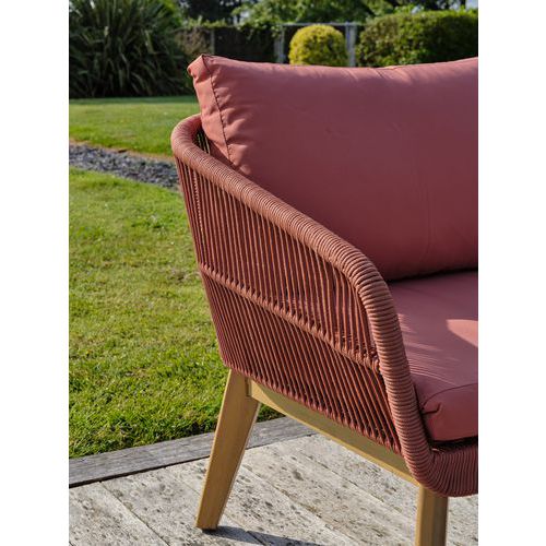 - Salon bas de jardin en bois d'acacia et corde tissée.
