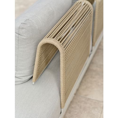 | Intitulé du produit | Salon de jardin d'angle en corde tissée et aluminium, Coloris: Gris, Livré monté: non |