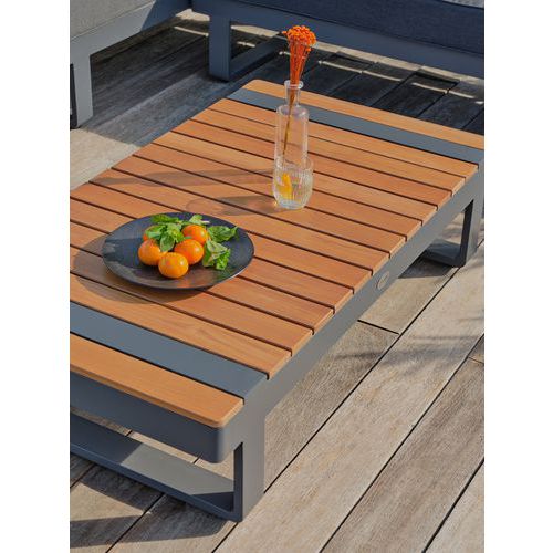 Salon de jardin d'angle en teck et aluminium, Coloris: Anthracite, Livré monté: non