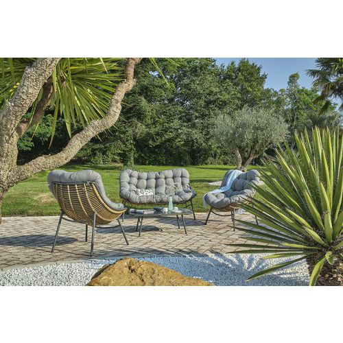 | Intitulé du produit | Salon de jardin en résine tressée, Coloris: Marron, Livré monté: non, Plateau longueur: 98.5 cm |
