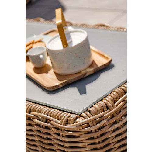 | Intitulé du produit | Salon de jardin en résine tressée, Coloris: Marron, Livré monté: oui, Plateau longueur: 112 cm |