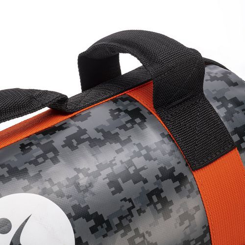 Sac lesté avec revêtement PVC extrêmement résistant de coloris gris type camouflage et 8 poignées rembourrées en mousse avec des coutures renforcées pour une bonne prise en main.