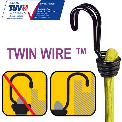 - Le crochet double fil offre une résistance supérieure aux sandow traditionnels.
