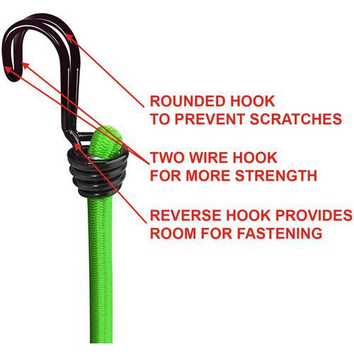 - Le crochet double fil offre une résistance supérieure aux sandow traditionnels.