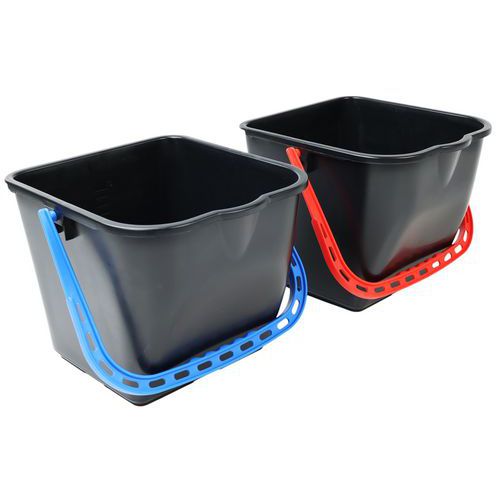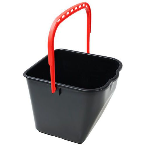 Seau pour chariot avec anse de couleur pour différencier les utilisations eau sale - eau propre. Pratique et facile à utiliser. Sa forme le rend très stable.