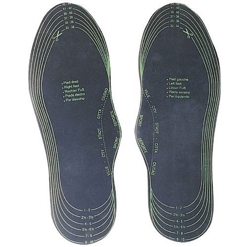 | Intitulé du produit | Semelles antimycoses et antiodeur, Coloris: Vert/gris, Matériau: Latex, Nb de paires: 1 |