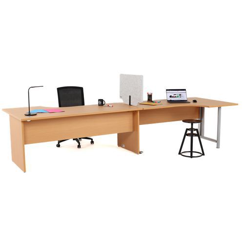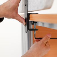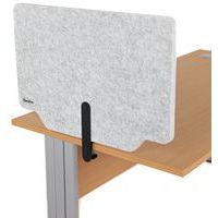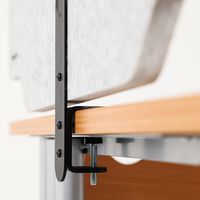Séparateur de bureau double fonctionnalité apporte de l'intimité et de l'absorption acoustique. Séparateur à fixer sur le bureau, épaisseur de plateau acceptée de 5 à 40 mm. Découpe pour faciliter le passage des câbles électriques. 2 coloris chics et intemporels design de découpe original.