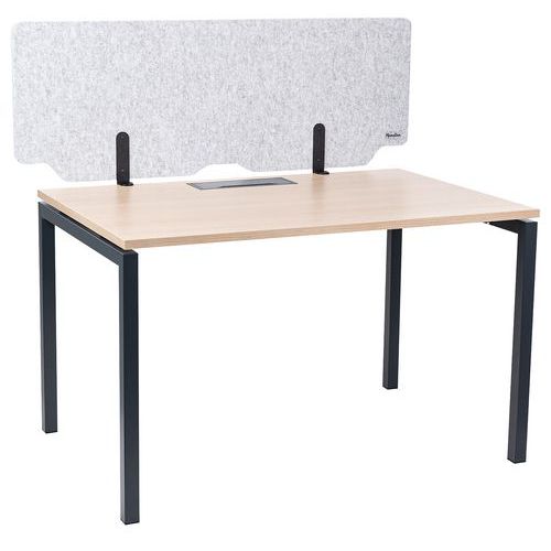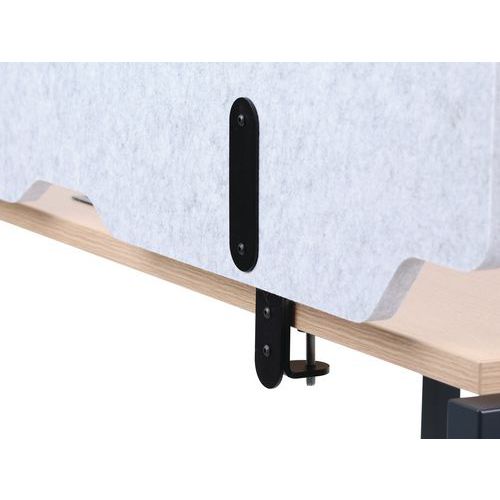 Séparateur de bureau double fonctionnalité apporte de l'intimité et de l'absorption acoustique. Séparateur à fixer sur le bureau, épaisseur de plateau acceptée de 5 à 40 mm. Découpe pour faciliter le passage des câbles électriques. 2 coloris chics et intemporels design de découpe original.