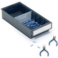 Séparation transversale pour bacs d’étagère. Les séparations sont également compatibles avec les étiquettes papier et les étiquettes codes-barres autocollantes. Chaque séparation présente une ouverture pour les tiquettes, dont une face lisse pouvant accueillir les codes-barres autocollants. Matière Polystyrene semiconductive. Fabriqué en UE
