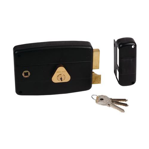 - Coffret et gâche en acier peint (ton noir).