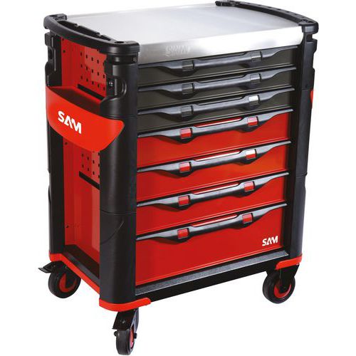 Servante 41 - 7 tiroirs - Plateau inox - Sam