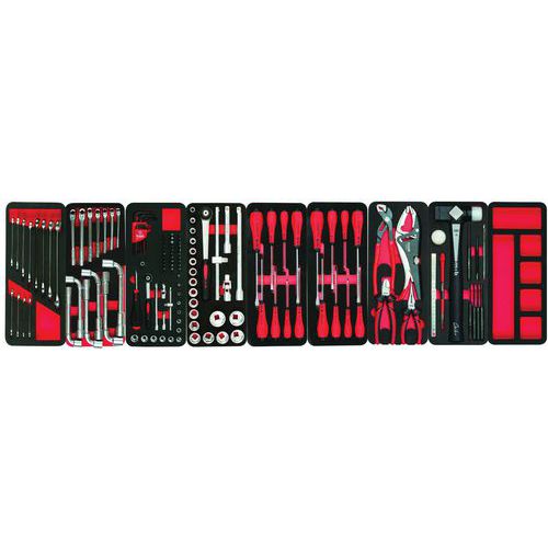 | Intitulé du produit | Servante garnie 7 tiroirs Proliner, Charge maxi par tiroir: 25 kg, Nb de tiroirs: 7, Nb d'outils: 177 |
