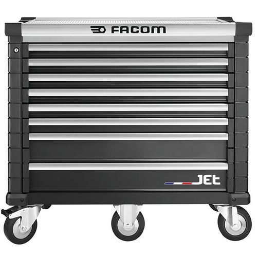 - Servante à outils JETM5 composée de 8 tiroirs, pouvant acceuillir jusqu'à 40 modules et dispose d'un volume utile de 250 L.