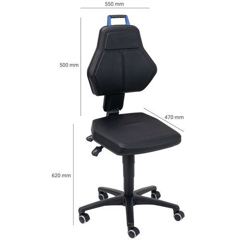 | Intitulé du produit | Siège d'atelier bas avec roulettes, Avec accoudoir: non, Type de pied: Roulettes |