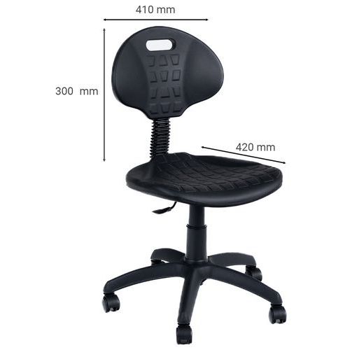 | Intitulé du produit | Siège d'atelier ergonomique, Avec accoudoir: non, Type de pied: Roulettes, Assise matériau: Polyuréthane |