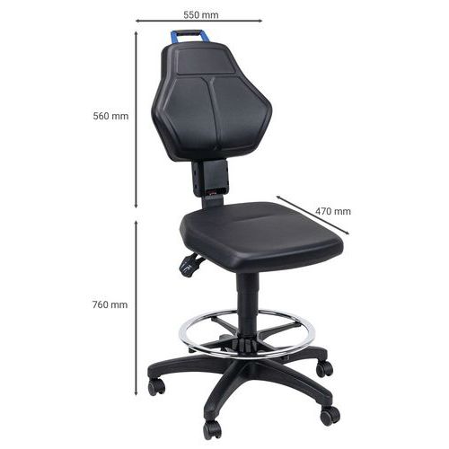 | Intitulé du produit | Siège d'atelier, Assise matériau: Similicuir, Dossier: oui, Siège modèle: Haut, Repose-pieds: oui |