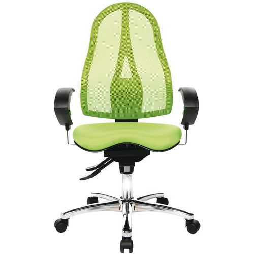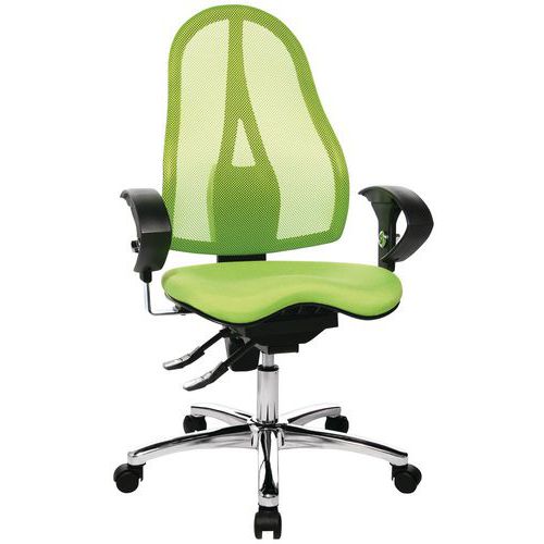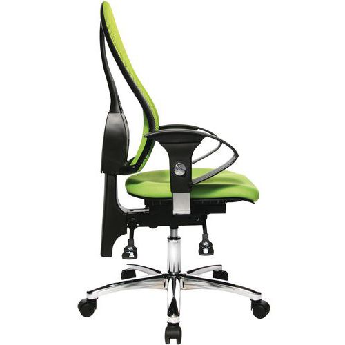 Siège de bureau ergonomique doté du contact permanent avec réglage en fonction du poids. Assise Fitness-Ortho mobile en 3D grâce à la technologie Sitness®, pour un dos plus fort, une meilleure posture et plus de confort au quotidien. Vérin pneumatique pour régler la hauteur et la profondeur d'assise. Dossier également réglable en hauteur pour plus de confort. Blocage du mécanisme en 3 positions différentes. Plus de maintien avec les accoudoirs réglable en hauteur de 26 à 32cm. Tissu 100% polypropylène (440 g/m²). Idéal pour le télétravail