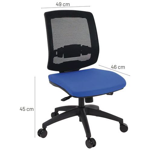 Siège de bureau avec dossier réglable. Dossier en résille. Mécanisme synchrone. Support lombaire. Idéal pour le télétravail
