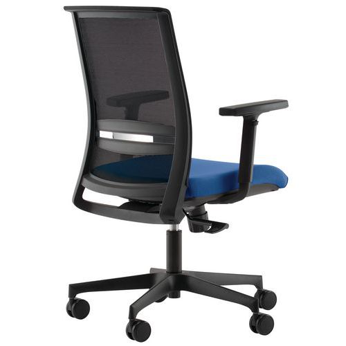 Siège de bureau avec accoudoirs et dossier résille, très confortable.