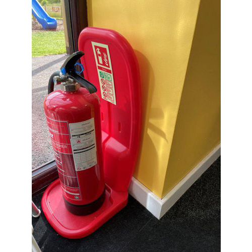 Socle porte extincteur, permet un accès immédiat en cas d'urgence.