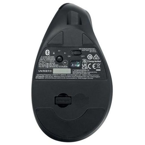 Souris rechargeable Pro Fit™ Ergo MY630 EQ, design vertical pour plus de confort et productivité au quotidien. Connecte jusqu’à trois appareils actifs. Compatible avec Windows, macOS et ChromeOS. Récepteur USB-A 2,4 GHz offre un chiffrement sécurisé AES 128 bits de niveau gouvernemental. Souris rechargeable grand format, permet une précision et un contrôle accrus pour une meilleure productivité. Avec 5 boutons avec clic silencieux, molette métal et sélection de la résolution en DPI. Plug & Play ou personnalisable grâce au logiciel gratuit KensingtonWorks™. Jusqu’à 4 mois d’autonomie de la batterie en cas de connexion via Bluetooth®* et jusqu’à 1 mois via le récepteur 2,4Ghz. Dispose d'une garantie de 3 ans.