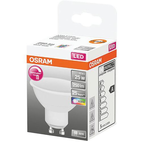 | Intitulé du produit | Spot Par16 Led 120 Rgbw Dim. Telecom., Flux lumineux: 250 lm, Type de culot: GU10 |