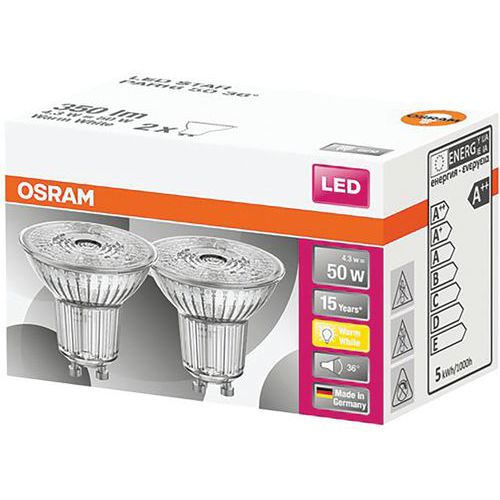 | Intitulé du produit | Spot Par16 Led50 4.3W Gu10 Chd Bte2, Flux lumineux: 350 lm, Type de culot: GU10 |