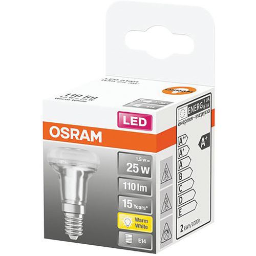 | Intitulé du produit | Spot R39Led Ver.Clair 1.5W E14 Chd Bte, Flux lumineux: 110 lm, Type de culot: E14 |