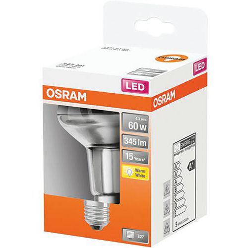 | Intitulé du produit | Spot R80Led Ver.Clair 4.3W E27 Chd Bte, Flux lumineux: 345 lm, Type de culot: E27 |