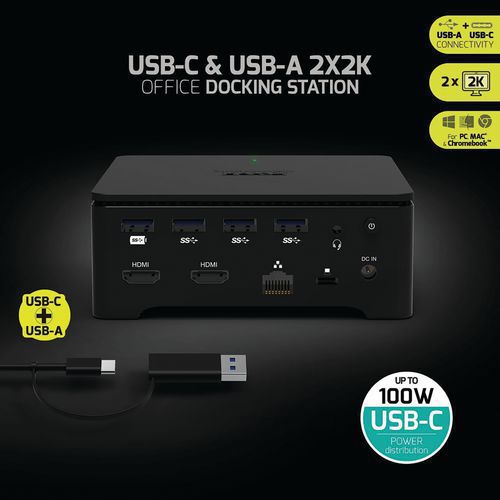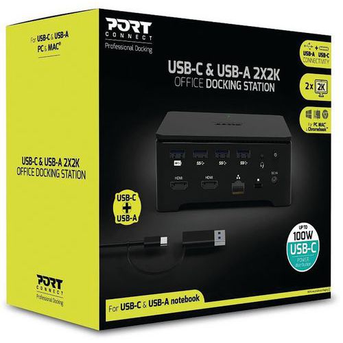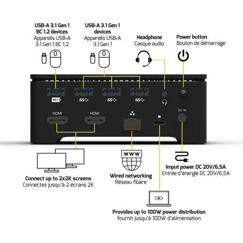 Station d'accueil de bureau Type C & USB A - 2 écrans 2K- Port Connect