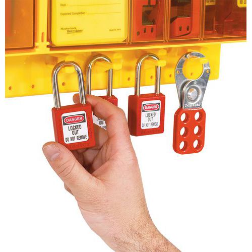 Intègre des cadenas en thermoplastique Zenex 410RED et des accessoires de consignation et de signalisation pour les vannes et le matériel électrique.