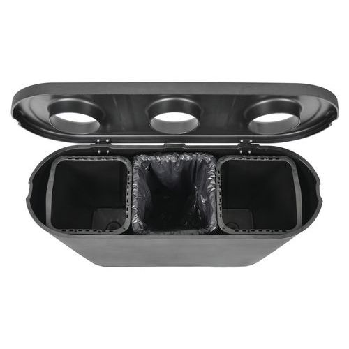 Equipée de 3 liners individuels étanches (3 x 45 litres) en plastique, qui se vident facilement en ouvrant le couvercle.
