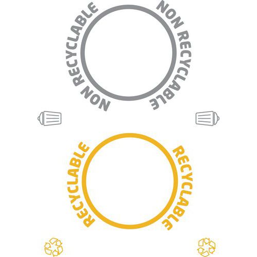 | Intitulé du produit | Stickers tri pour corbeille avec couvercle Tulipe, Coloris: Gris/jaune, Nb de pièces: 2 |