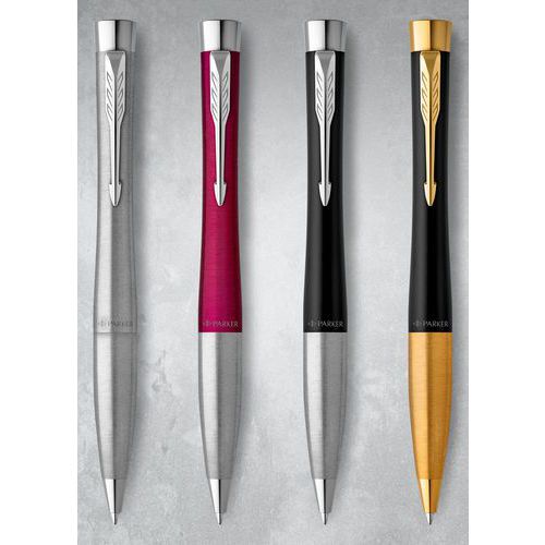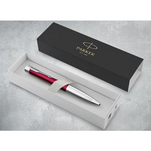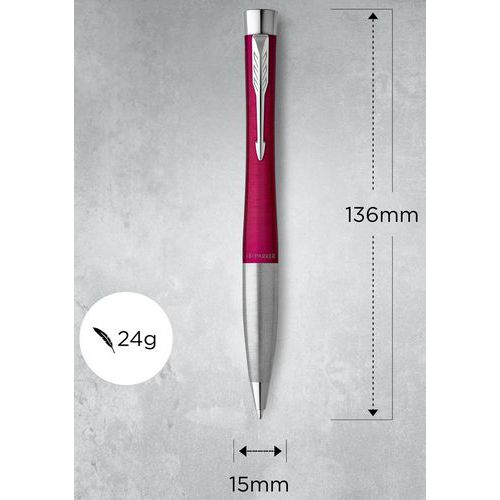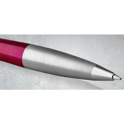 Finition laquée brillante en magenta radieux est complétée par des garnitures chromées et un canon chromé, ainsi que par l'attache-flèche typique de PARKER.