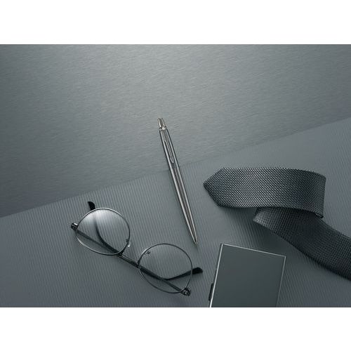 Stylo bille M Jotter C. Corps en acier inoxydable avec finition rouge, attributs brillants et clip en forme de flèche. Mécanisme d'ouverture et de fermeture par bouton-poussoir. Débit d'encre optimal pour un confort d'écriture.