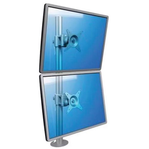 Ce produit, simple en apparence, permet la fixation verticale de deux écrans sur votre poste de travail et l'ajustement aisé de leur hauteur grâce au levier de réglage rapide. Équipé d'une fixation à visser au travers du bureau et d'une pince serre-joint.
