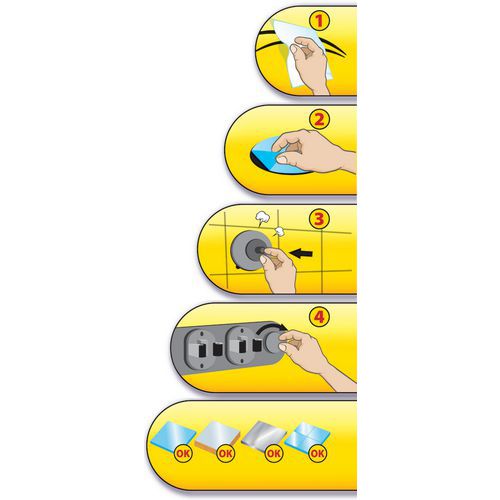 Se fixe par 2 ventouses adhésives et repositionnables permettant une fixation solide sur tous types de revêtement lisse sans être nécessairement du carrelage ou de la vitre (par exemple : tôle laquée ou bois laqué).