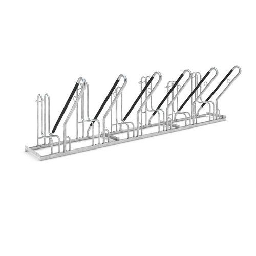 Support cycle moderne. Avec des arceaux extra-sécurisés qui protègent vos vélos contre le vol. Résistant aux intempéries. Finition galvanisée de qualité n'abîmant pas les jantes et les roues. Supports de fixation au sol inclus. Fabriqué en UE