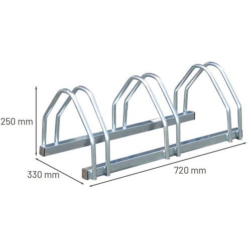 | Intitulé du produit | Support cycles Éco, Longueur hors tout: 720 mm, Nb de places: 3, Modèle: Standard, Largeur hors tout: 330 mm |