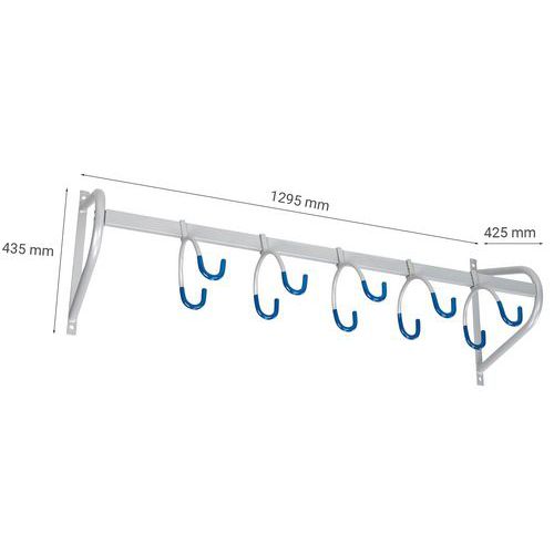 | Intitulé du produit | Support cycles mural suspendu, Longueur hors tout: 1295 mm, Nb de places: 5, Largeur hors tout: 425 mm |