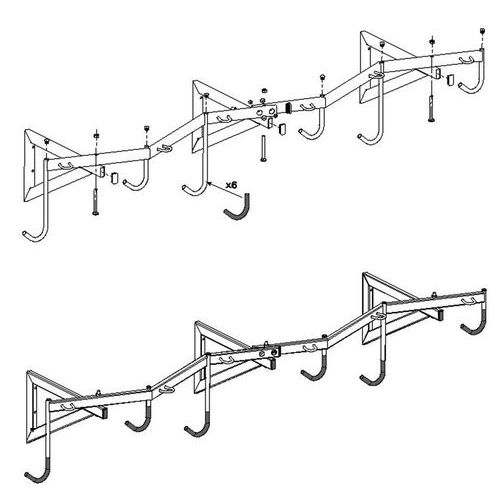 | Intitulé du produit | Support cycles mural suspendu, Longueur hors tout: 2000 mm, Nb de places: 6, Largeur hors tout: 550 mm |