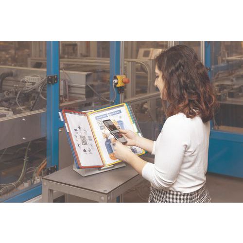 - Support de bureau allant de 10 à 50 pochettes de présentation.