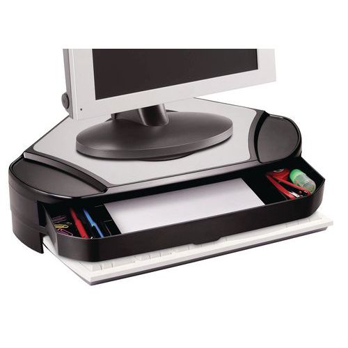 | Intitulé du produit | Support écran d'angle, Modèle: Avec tiroir, Charge maxi: 15 kg, Coloris: Noir, Hauteur hors tout: 13.5 cm |