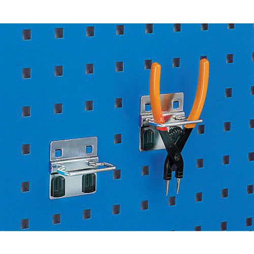 Suspendez vos pinces dans ce support fermé. Modèle robuste de 6 mm d'épaisseur. Fixez le support en un tournemain à l'aide des clips de sûreté en plastique.