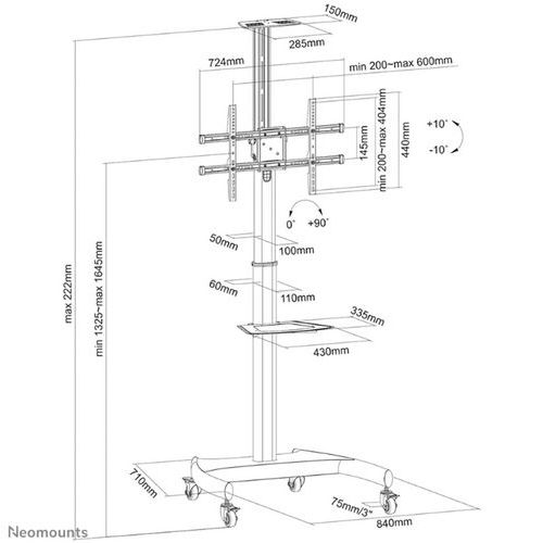 | Intitulé du produit | Support mobile inclinable et rotatif à 90 écran 37'' à 70'' Neomounts By Newstar, Hauteur réglable: oui |