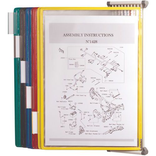 Support mural à pivot 10 pochettes pour format A4, Support matériau: Acier, Coloris: Assorti Support mural à pivot 10 pochettes pour format A4, Support matériau: Acier, Coloris: Assorti