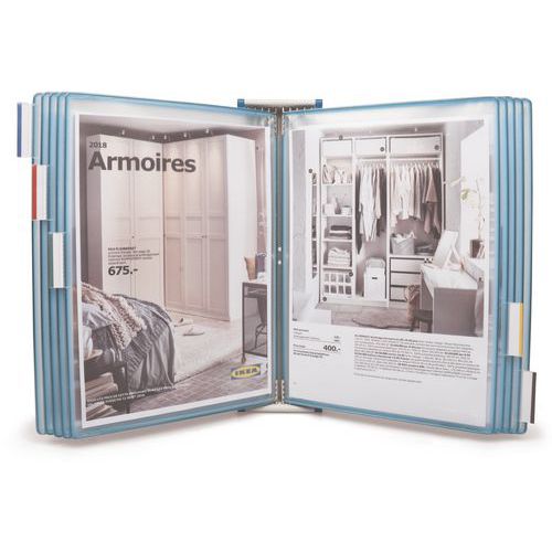 Le support mural se compose d’un support pouvant accueillir 10 pochettes.